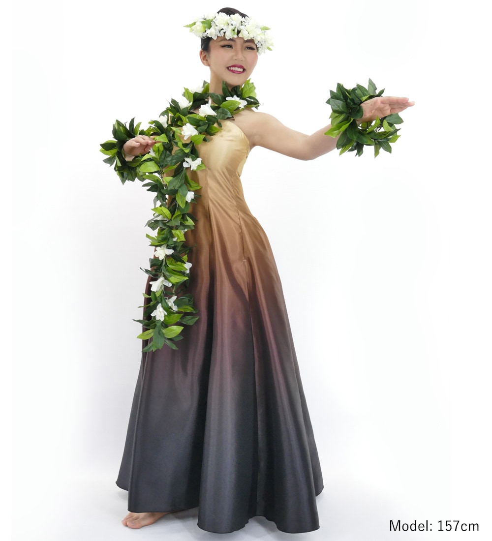 光沢のあるシャンタン生地で、深く優美なグラデーションカラーのロング丈フラドレスをご用意しました。