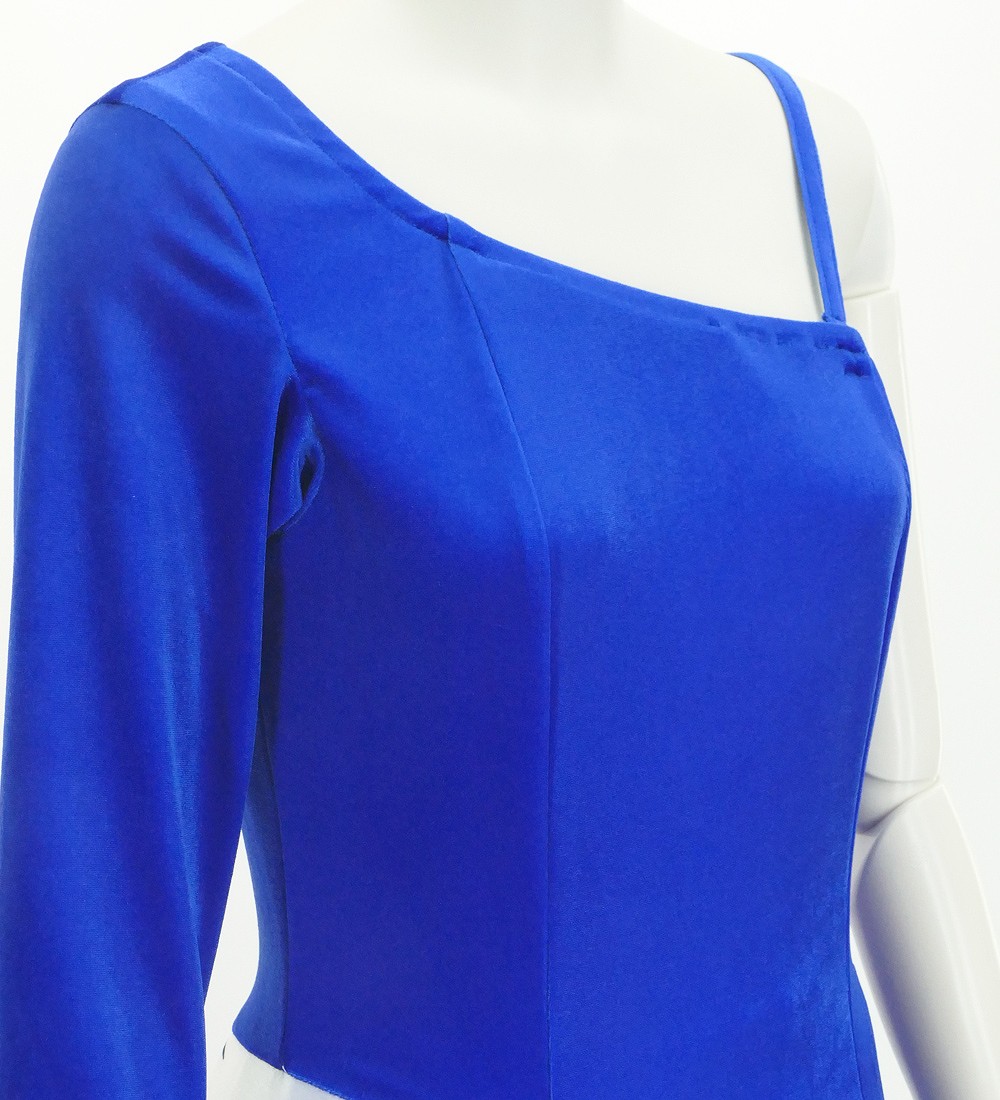 ロングスリーブとワンショルダーのコントラストが目を惹きます。