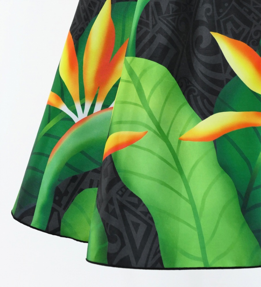 ストレリチア柄のバックにはカヒコ柄がほどこされています。
