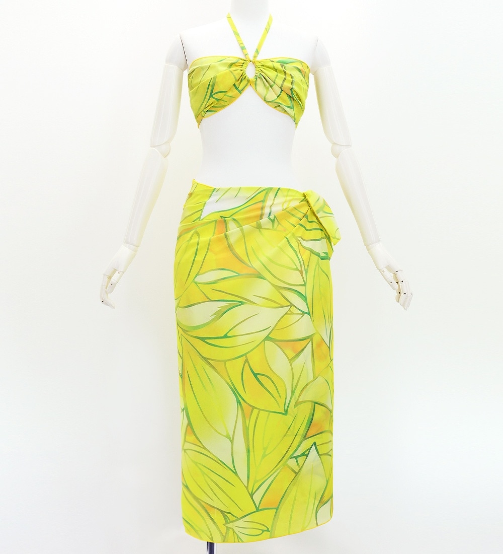 emikaオリジナルのコシボ生地を使用した、軽やかな素材感のパレオとブラトップの上下セットです。