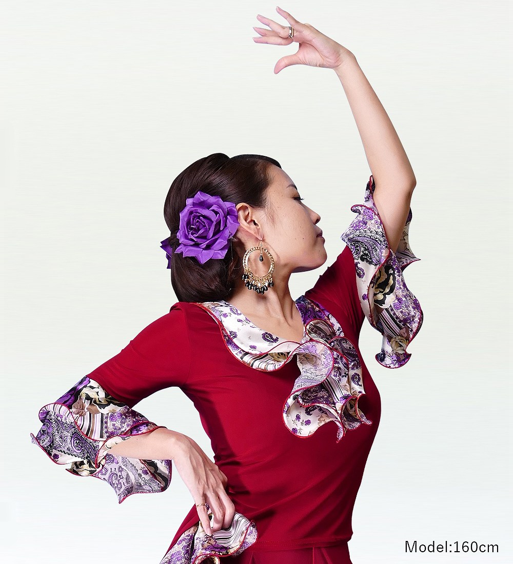 フラメンコ ローズ&ペイズリーフリル ブラウス レッド 1901r