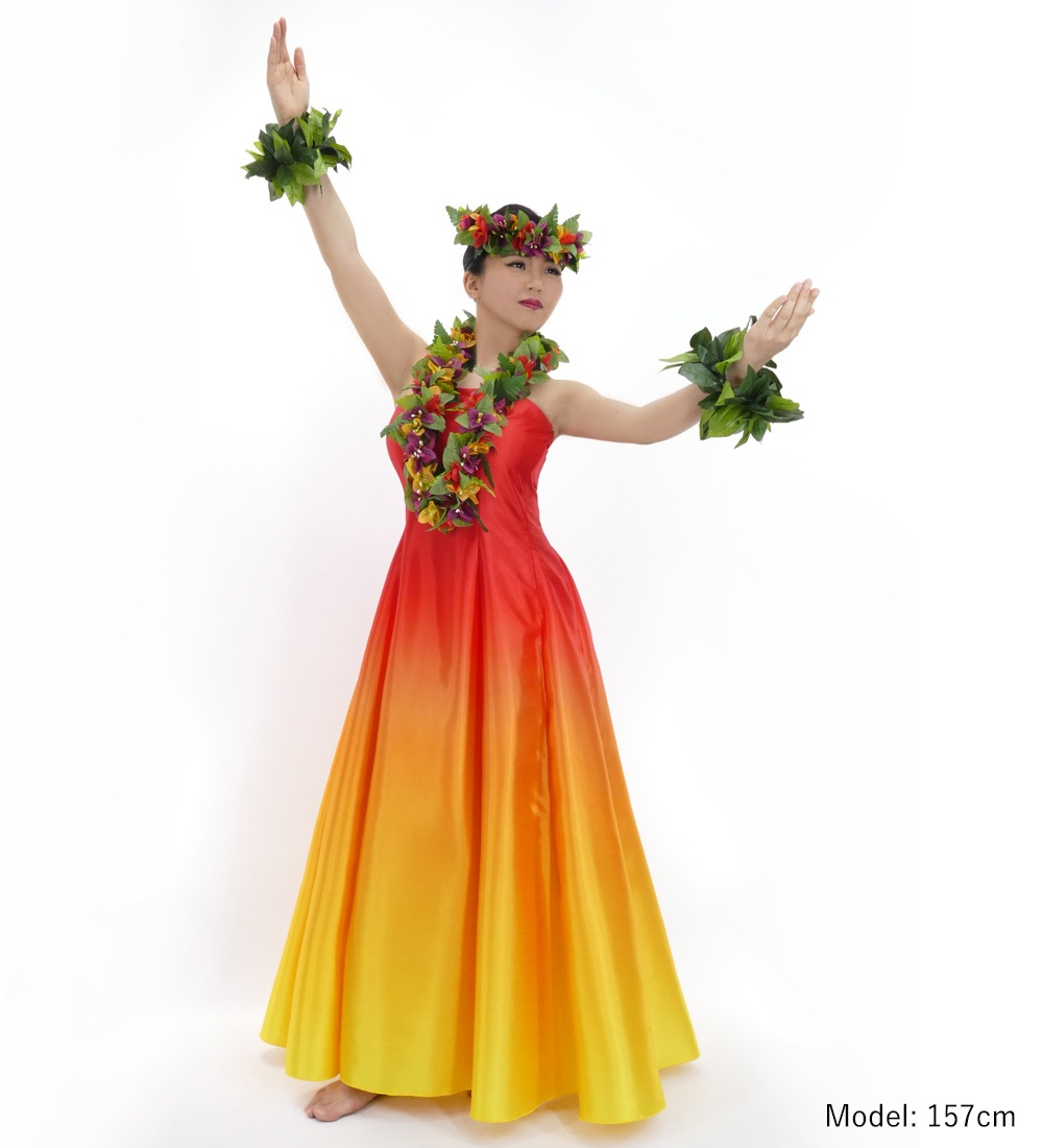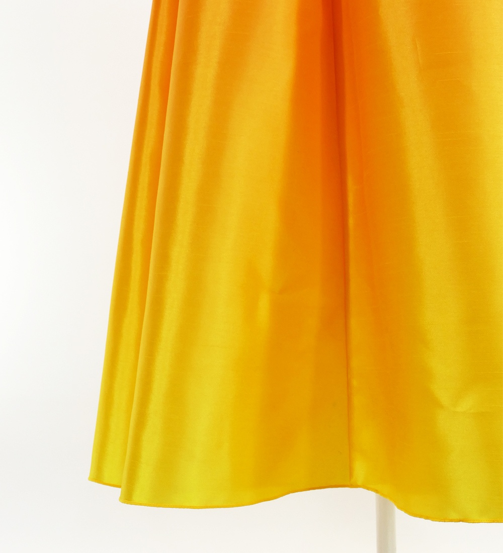 光沢のあるシャンタン生地で、深く優美なグラデーションカラーのロング丈フラドレスをご用意しました。