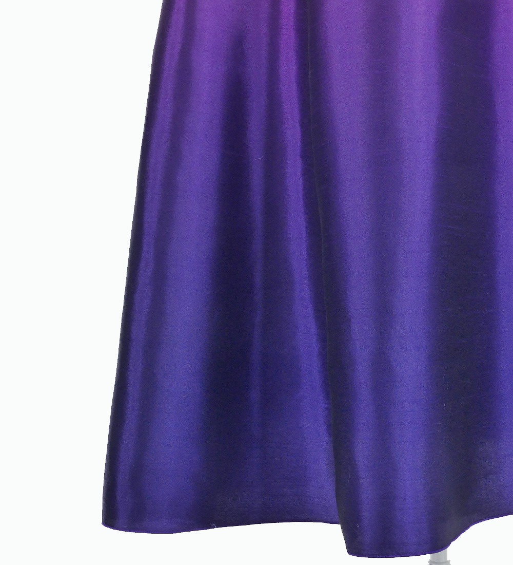 光沢のあるシャンタン生地で、深く優美なグラデーションカラーのロング丈フラドレスをご用意しました。