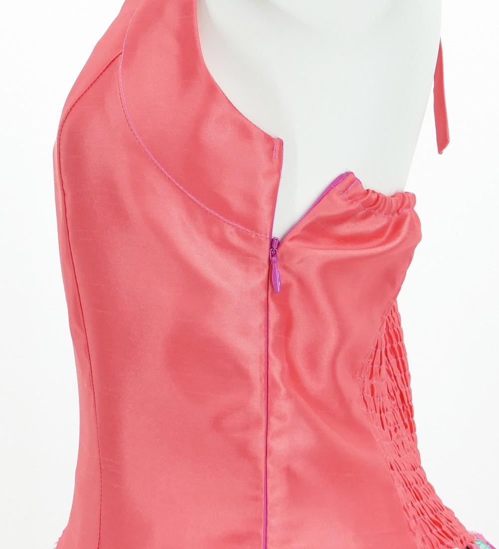 胸元はハートネックでデコルテ部分をより美しく引き立て、 ホルターネックでバックスタイルも印象をプラスします。