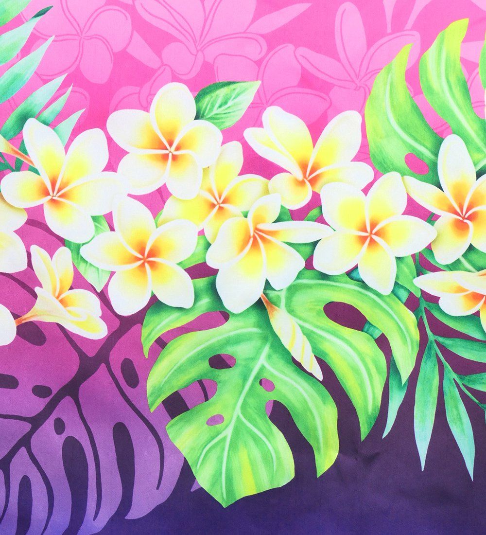 フラダンス シャンタン パウスカート シングル プルメリアレイ パープル×レッド J3147purd