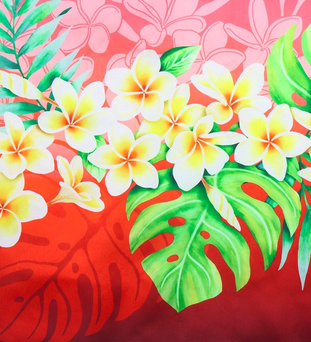 フラダンス シャンタン パウスカート シングル プルメリアレイ パープル×レッド  J3147purd