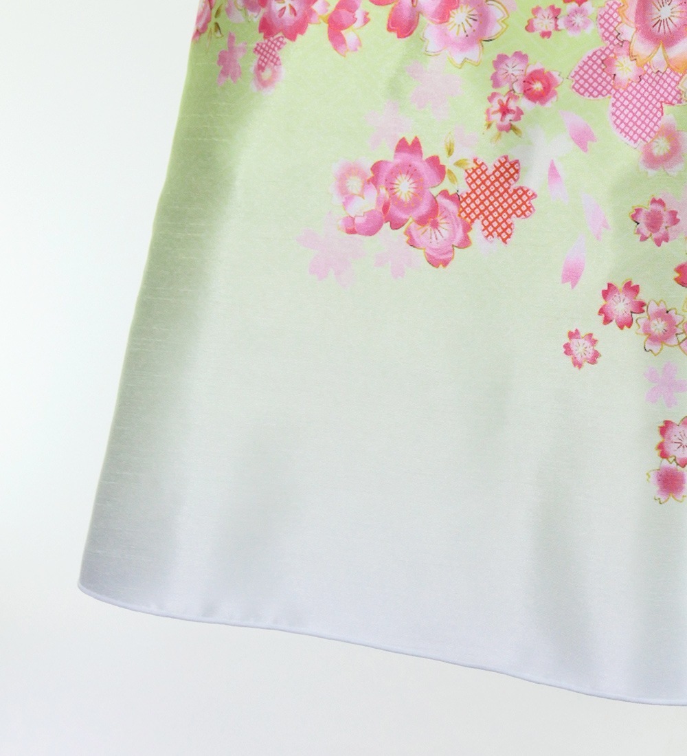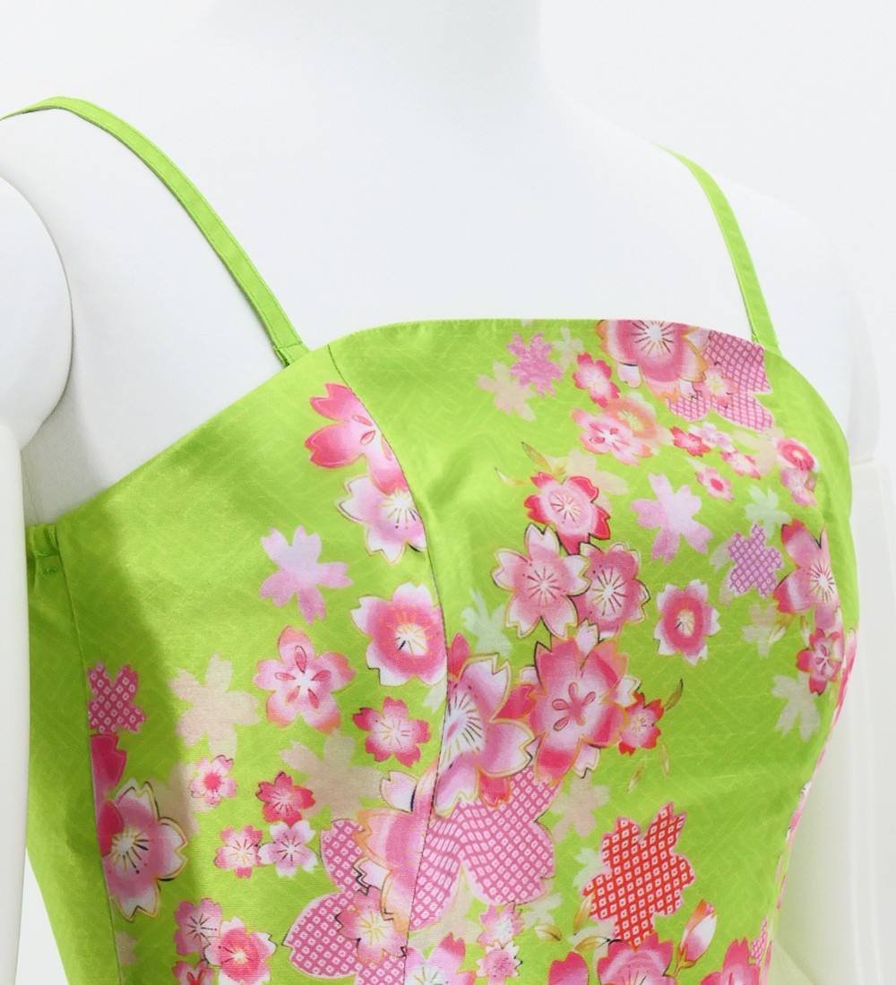 紗綾柄に桜をあしらった日本の伝統的な和柄のロング丈ドレスです。