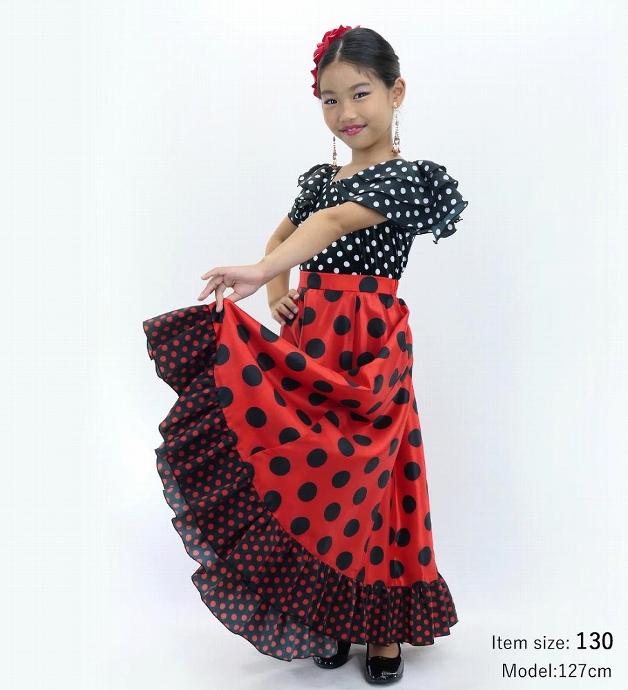 emikaオリジナルプリントのつやのあるシャンタン生地を使用した、キッズ用フリルファルダです。