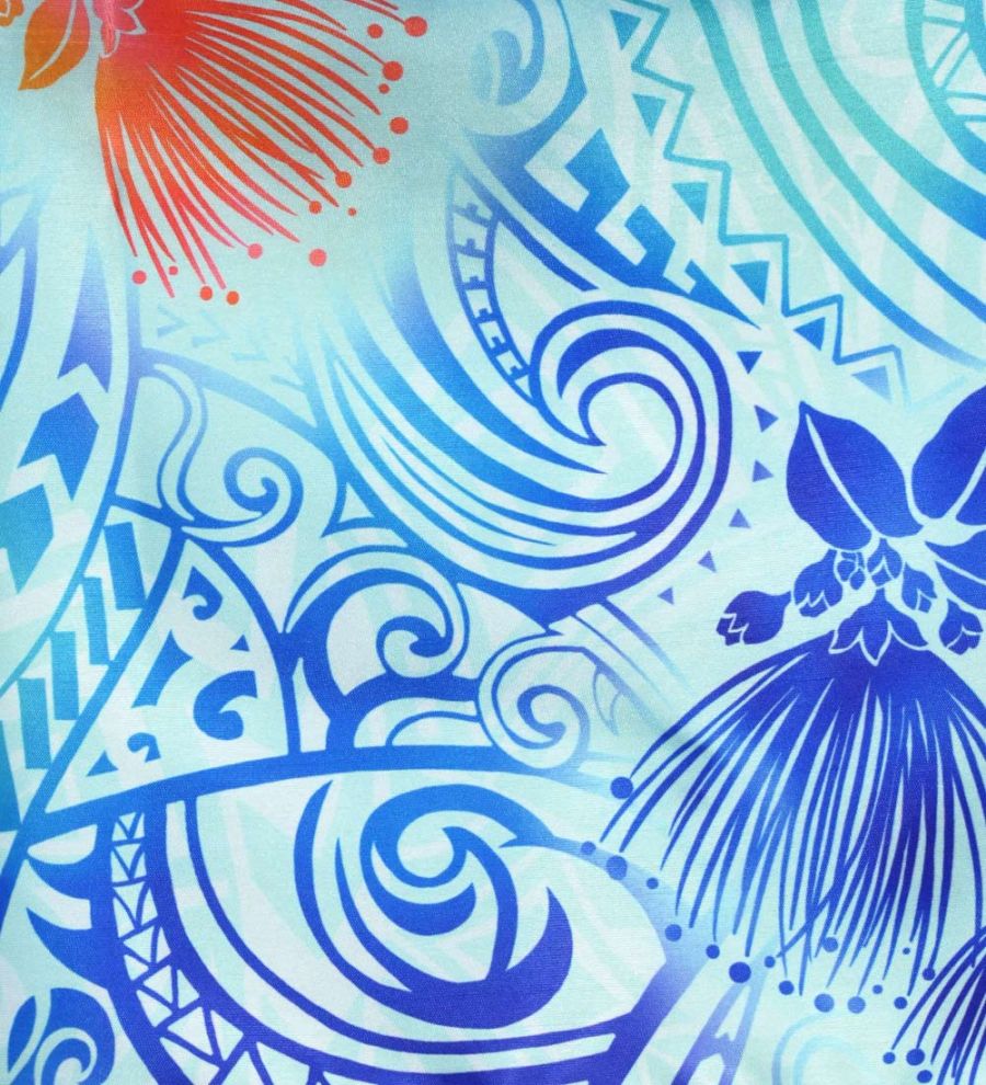 タヒチアン シャンタン スカート カヒコ×レフア ライトブルー J3226-17