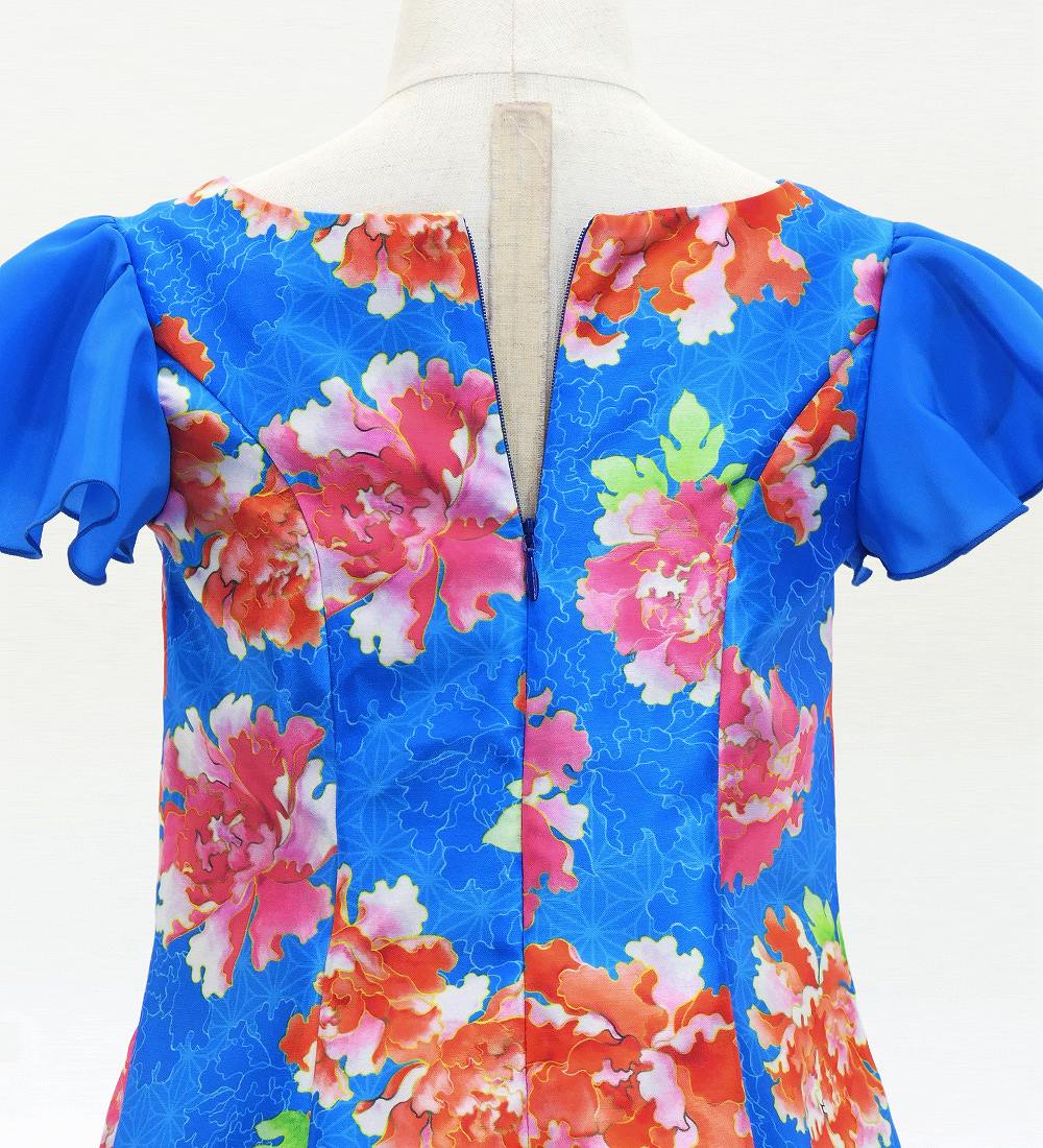 上品な光沢をもつシャンタンドレスに、 花びらのようなコシボ生地スリーブが重なり合い、素敵に演出してくれます。